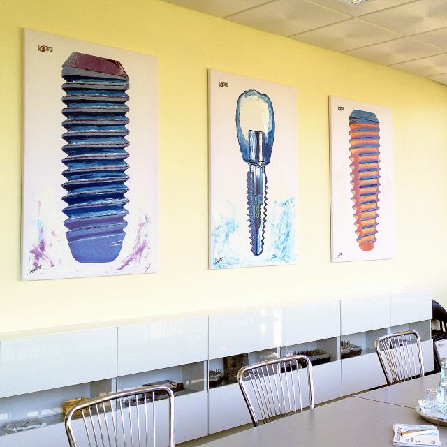 In dieser fruchtbaren und innovativen Zusammenarbeit rücken Sie selbst in den Mittelpunkt der künstlerischen Betrachtung. Jedes Unternehmen hat eigene Werte und Stärken, die es einzigartig machen und seine Erfolge begründen. Eigens für Sie und Ihre jeweiligen Raumsituationen fertigt Dental-ART Kunstwerke an, die Ihren Räumen eine unverwechselbare künstlerische Note geben. Die Ausstattung Ihrer Umgebung soll neben den rein funktionalen Aspekten, auch Ihre Philosophie repräsentieren – gegenüber Ihren Mitarbeitern und besonders im Hinblick auf Ihre Geschäftspartner und Patienten.