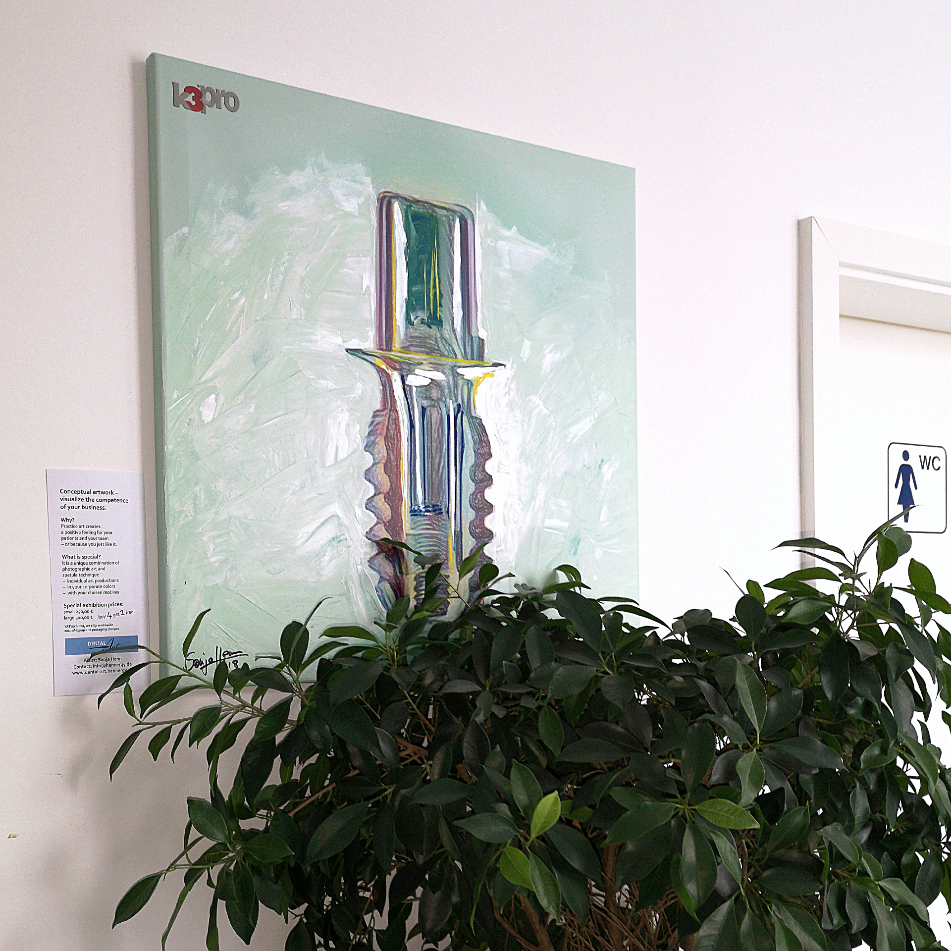 Abhängig vom Budget, Ihrem Praxis-/ Firmenprofil und den Räumlichkeiten, macht Dental-ART Ihnen konkrete Vorschläge, wie Sie Ihre künstlerische Umgebung in Einklang mit Ihrem unternehmerischen Selbstverständnis bringen.